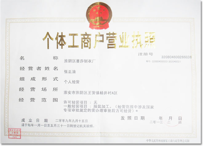 淮阴区蔓莎制衣厂具有20年生产经验,在设计上不断创新,款式多样,大方美观,做工精湛,价格合理,售后服务完善。让您真正的可以感受“顾客为本“的服务理念。正是由于这种理念,我们得到了广大客户的一致好评!